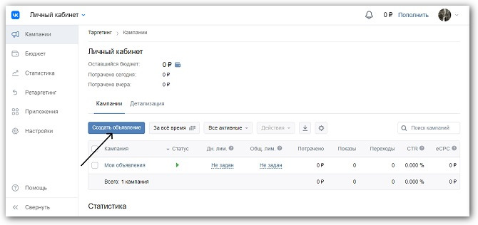 Создание рекламного кабинета